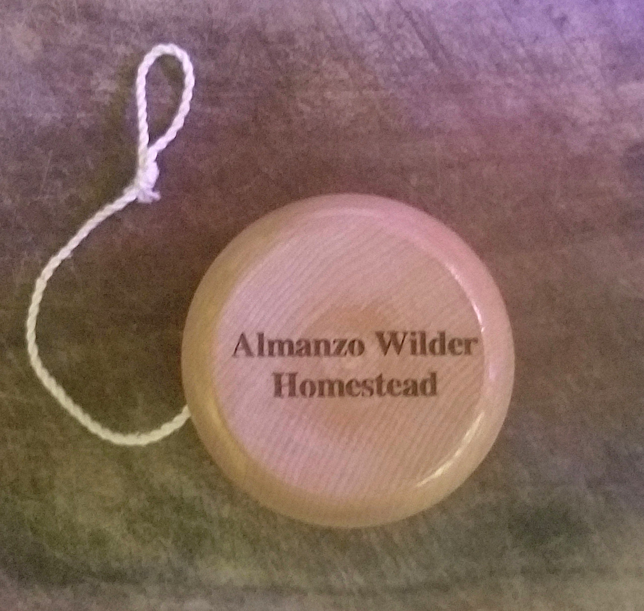 Traditional toy made from hardwood with a lacquer finish.. Engraved with Almanzo Wilder Homestead.